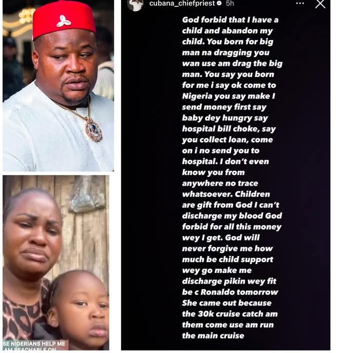 God forbid that I have a child and abandon my child. I don’t even know you from anywhere, no trace whatsoever- Cubana ChiefPriest tells his alleged Kenyan babymama as he reacts to her online clash with BurnaBoy’s associates