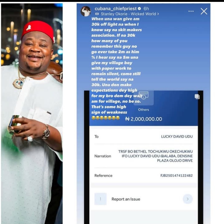 It is all a lie- Lucky Udu comes ou to clear his name after Cubana Chiefpriest’s alleged babymama accused him of demanding sexu@l favours from her and also asking for a percentage of any money she receives from Burna Boy