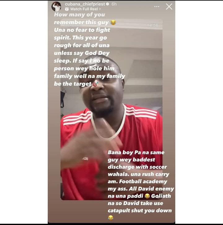 All your men shall fall if they cross my lane- Cubana Chiefpriest calls out Burna Boy for sharing a video of himself driving through his neighborhood in Ikoyi with an eye symbol