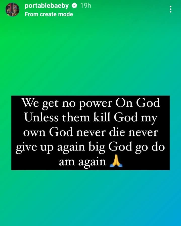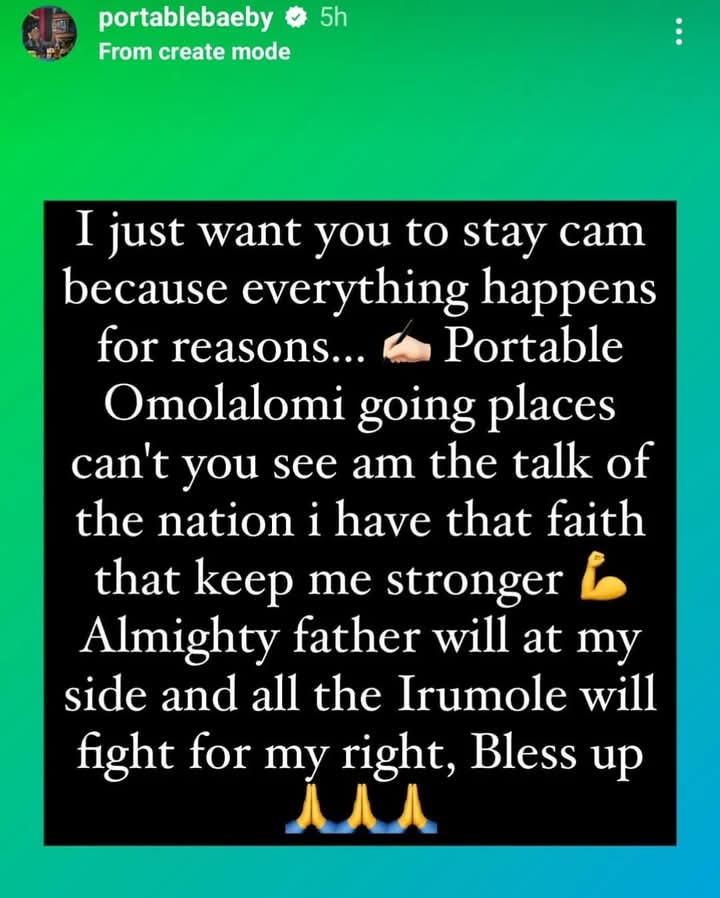 Portable has also stated his need for a strong lawyer, specifically mentioning wanting someone like “Daddy Falana,” to represent him in court.