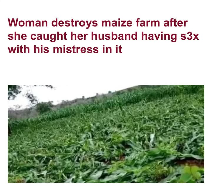 The wife, venturing into her maize field, stumbled upon a scene that would irrevocably alter her reality: her husband, caught in a compromising embrace with another woman. The shock of this discovery, the betrayal laid bare, sent the illicit couple scrambling for escape, abandoning the wife to grapple with the emotional tsunami that engulfed her.Left alone amidst the towering stalks of maize, a symbol of her labor and sustenance, the wife succumbed to a whirlwind of shock, anger, and heartbreak. Seizing a slasher, she embarked on a destructive rampage, the sharp blade slicing through the maize with relentless ferocity.
