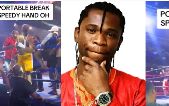 Nigerian singer Portable triumphed over Speed Darlington in a celebrity boxing match, as seen in a widely circulated video.