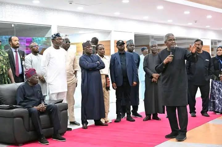 President Bola Ahmed Tinubu has reportedly visited the Dangote Refinery, accompanied by prominent Nigerian businessmen Femi Otedola and Abdul Samad Rabiu, Chairman of the BUA Group.