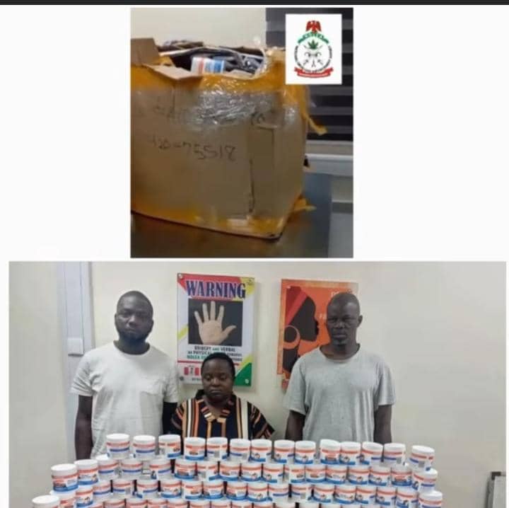 The discovery was made on October 14, 2025, during an examination of cargoes declared as personal effects scheduled to be shipped on an Air Peace flight to London.Following the seizure, NDLEA operatives arrested the cargo agent, Lawal Mustapha Olakunle, who had presented the consignment for airfreight. Further investigations, spanning two weeks, led to the apprehension of two additional suspects identified as Ogunmuyide Taiwo Deborah, a female healthcare worker, and Mutiu Adebayo Adebiyi, the Chief Executive Officer of Mutiu Adebiyi & Co., a Lagos-based travel agency.Ogunmuyide was picked up on October 18, while Adebiyi was arrested two days later at his office located at 23 Ladoke Akintola Street, Ikeja GRA, Lagos.In a related operation, NDLEA officers at the Akanu Ibiam International Airport (AIIA), Enugu, foiled another drug trafficking attempt involving a 35-year-old Lesotho national, Lemena Mark, who tried to export 103.59 grams of methamphetamine concealed inside a pack of Diabeta Herbs Coffee Tea to the Philippines.