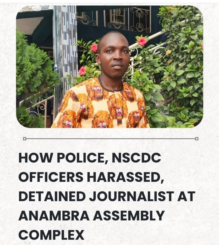 A journalist has narrated how he was allegedly harassed, detained, and had his phones confiscated by police officers and personnel of the Nigeria Security and Civil Defence Corps (NSCDC) at the Anambra State House of Assembly complex.