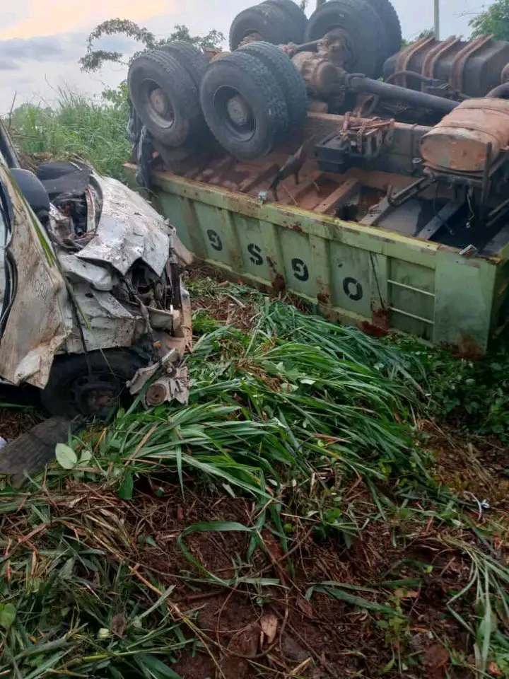 The crash occurred on Saturday evening along the Daywaterman axis, very close to Onipepeye, inbound Abeokuta on the PMB Expressway. It involved an unregistered Dongfeng truck belonging to the Ministry of Environment (with no number plate) and a Toyota minibus branded for a political campaign (also without a number plate).